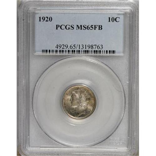 <B>1920 10C MS65 Full Bands PCGS.</B></I> PCGS Population (169/81). NGC Census: (99/43). Mintage: 59,030,000. Numismedia Wsl. Price for NGC/PCGS coin in MS65: $440. (#4929)<BR><BR><B>Coin Engraver:</B> Adolph A. Weinman<BR><BR><b>Shipping:</b> Coins & Currency (<a target="_blank" href="http://www.heritageauctions.com/common/shipping.php">view shipping information</a>)
