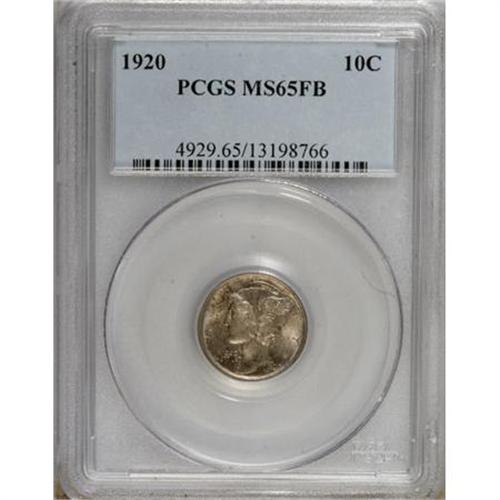<B>1920 10C MS65 Full Bands PCGS.</B></I> PCGS Population (169/81). NGC Census: (99/43). Mintage: 59,030,000. Numismedia Wsl. Price for NGC/PCGS coin in MS65: $440. (#4929)<BR><BR><B>Coin Engraver:</B> Adolph A. Weinman<BR><BR><b>Shipping:</b> Coins & Currency (<a target="_blank" href="http://www.heritageauctions.com/common/shipping.php">view shipping information</a>)