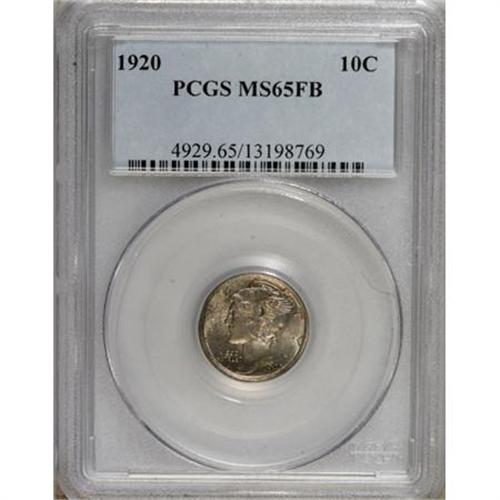<B>1920 10C MS65 Full Bands PCGS.</B></I> PCGS Population (169/81). NGC Census: (99/43). Mintage: 59,030,000. Numismedia Wsl. Price for NGC/PCGS coin in MS65: $440. (#4929)<BR><BR><B>Coin Engraver:</B> Adolph A. Weinman<BR><BR><b>Shipping:</b> Coins & Currency (<a target="_blank" href="http://www.heritageauctions.com/common/shipping.php">view shipping information</a>)
