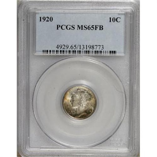 <B>1920 10C MS65 Full Bands PCGS.</B></I> PCGS Population (169/81). NGC Census: (99/43). Mintage: 59,030,000. Numismedia Wsl. Price for NGC/PCGS coin in MS65: $440. (#4929)<BR><BR><B>Coin Engraver:</B> Adolph A. Weinman<BR><BR><b>Shipping:</b> Coins & Currency (<a target="_blank" href="http://www.heritageauctions.com/common/shipping.php">view shipping information</a>)