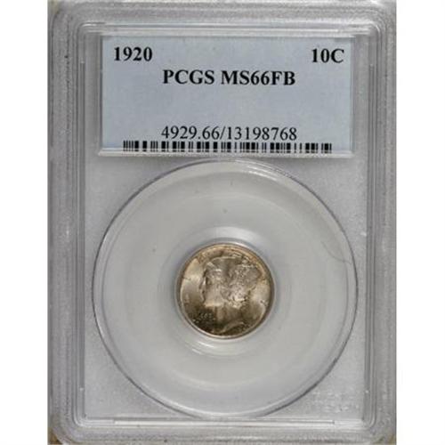 <B>1920 10C MS66 Full Bands PCGS.</B></I> PCGS Population (69/12). NGC Census: (29/14). Mintage: 59,030,000. Numismedia Wsl. Price for NGC/PCGS coin in MS66: $740. (#4929)<BR><BR><B>Coin Engraver:</B> Adolph A. Weinman<BR><BR><b>Shipping:</b> Coins & Currency (<a target="_blank" href="http://www.heritageauctions.com/common/shipping.php">view shipping information</a>)