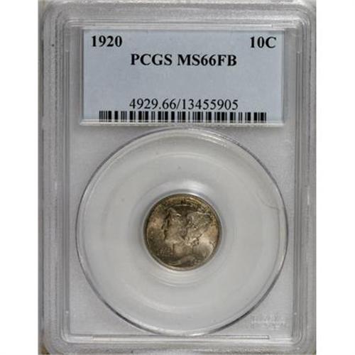 <B>1920 10C MS66 Full Bands PCGS.</B></I> PCGS Population (69/12). NGC Census: (29/14). Mintage: 59,030,000. Numismedia Wsl. Price for NGC/PCGS coin in MS66: $740. (#4929)<BR><BR><B>Coin Engraver:</B> Adolph A. Weinman<BR><BR><b>Shipping:</b> Coins & Currency (<a target="_blank" href="http://www.heritageauctions.com/common/shipping.php">view shipping information</a>)