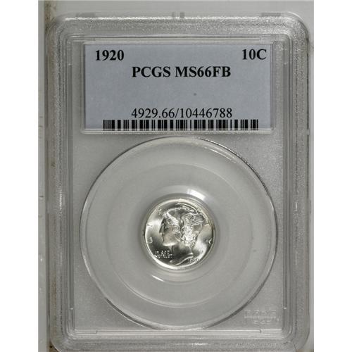 1920 10C MS66 Full Bands PCGS. A thickly frosted silve