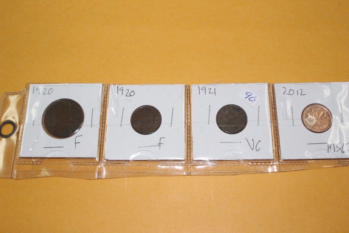 1920; 1920; 1921; 2012 Cdn. One Cent Coin