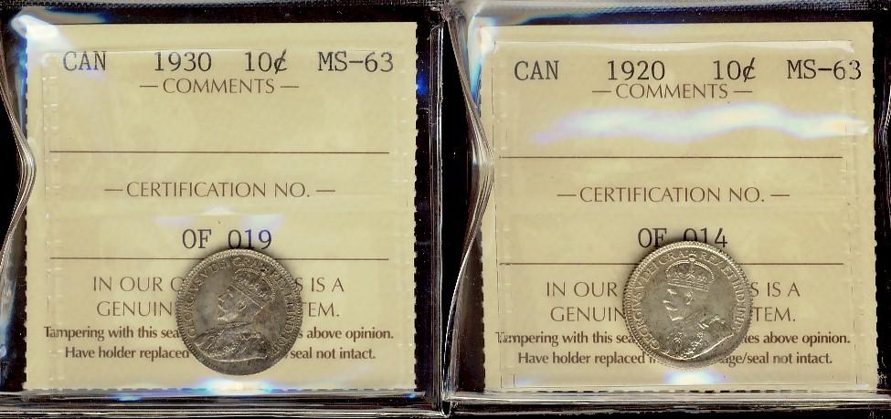 1920, 1930, 10¢ both ICCS MS63,