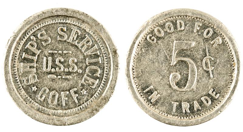 U.S.S. GOFF 1920-1947 named for Secretary of the Navy Nathan Goff Jr. Operated off the Atlantic Coast and humanitarian service during Greek-Turkish conflict in 1923. In World War II was used as an escort, fending off German U-boats, and keeping supply lines open to Europe. Struck from Navy registry in 1945, scrapped in 1947.