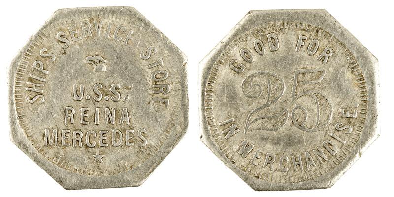 U.S.S. Reina Mercedes, 1920-1957, was originally a cruiser with the Spanish navy which was sunk at Cuban harbor. The United States captured the ship and salvaged was used as a training ship. Because of the antique nature of the ship midshipmen serving punishment were forced to serve up to 2 months on board. Decommissioned in 1957 and sold for scrap.