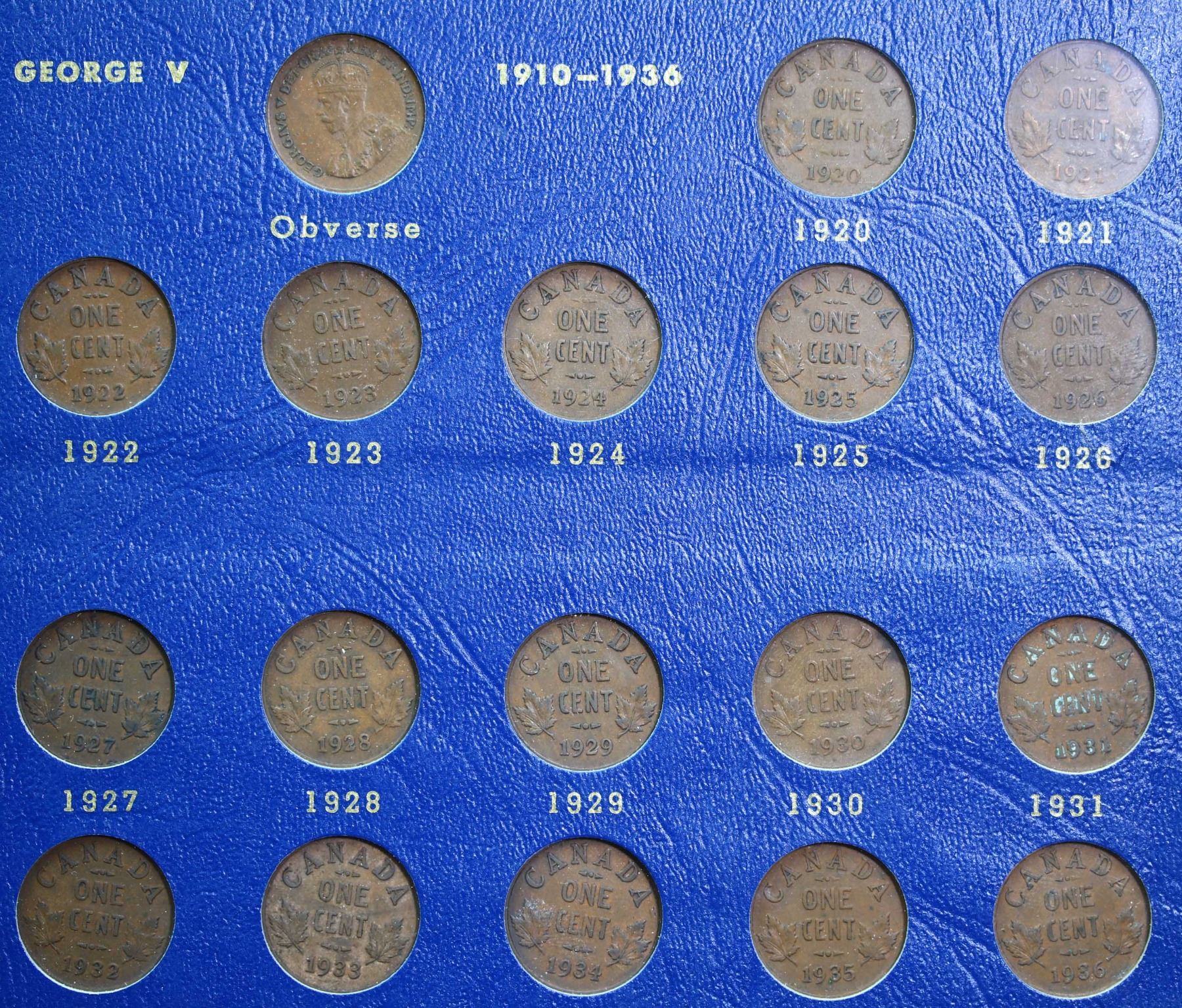 1920-1968 1¢ A nice date set including key dates. Grades vary from VG to Gem Uncirculated.