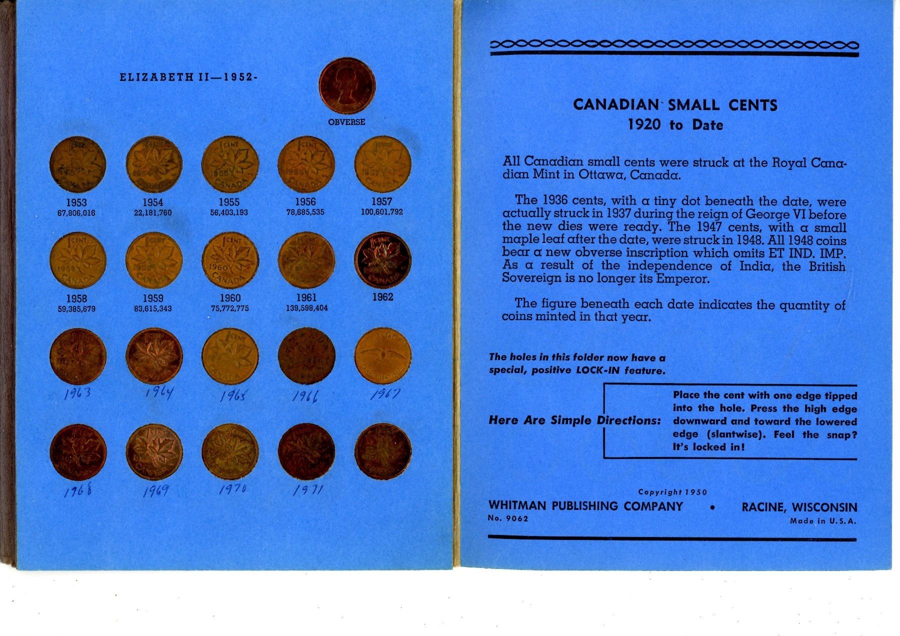 1920-1971 Whitman Canadian One Cent Collection