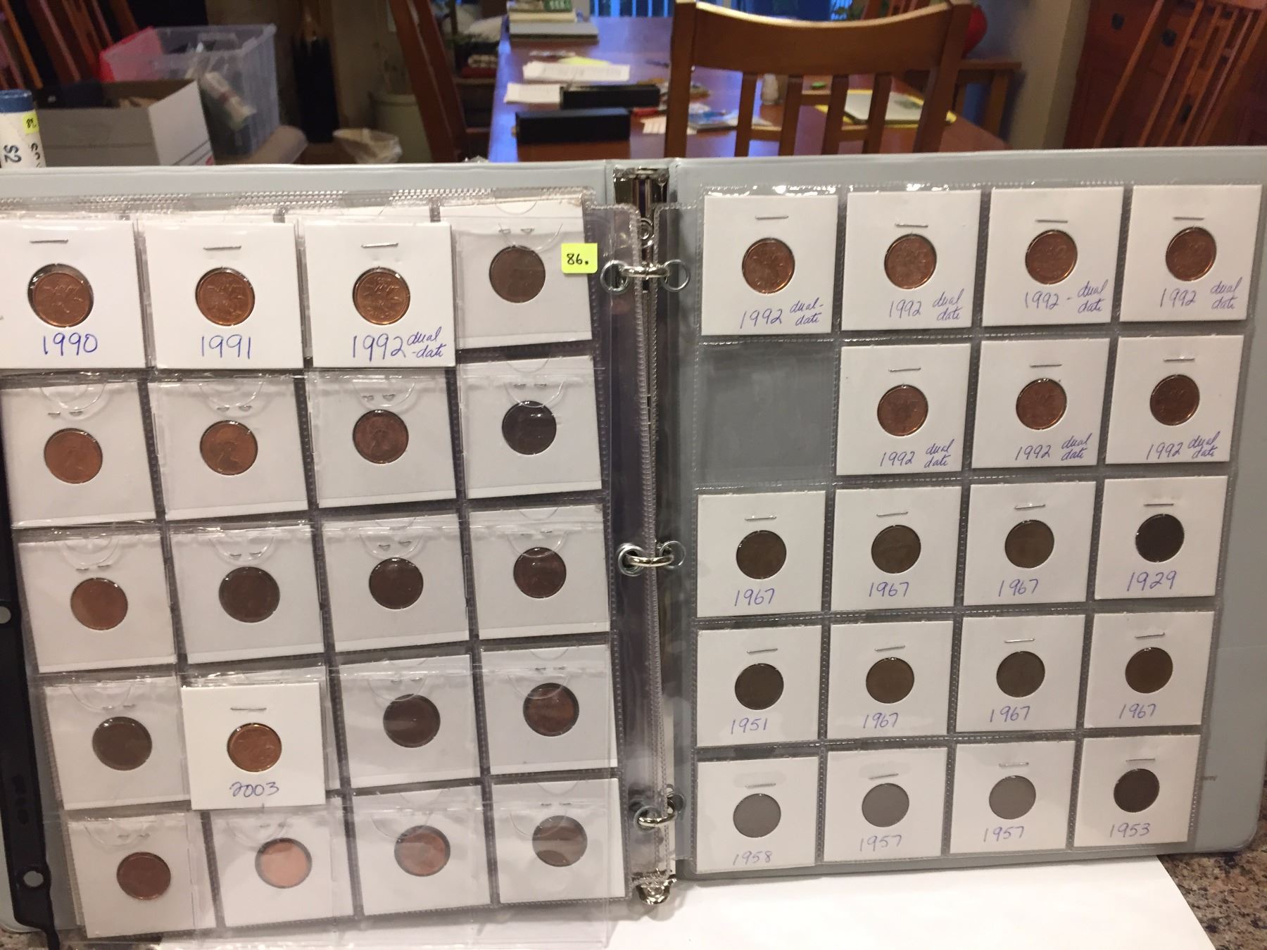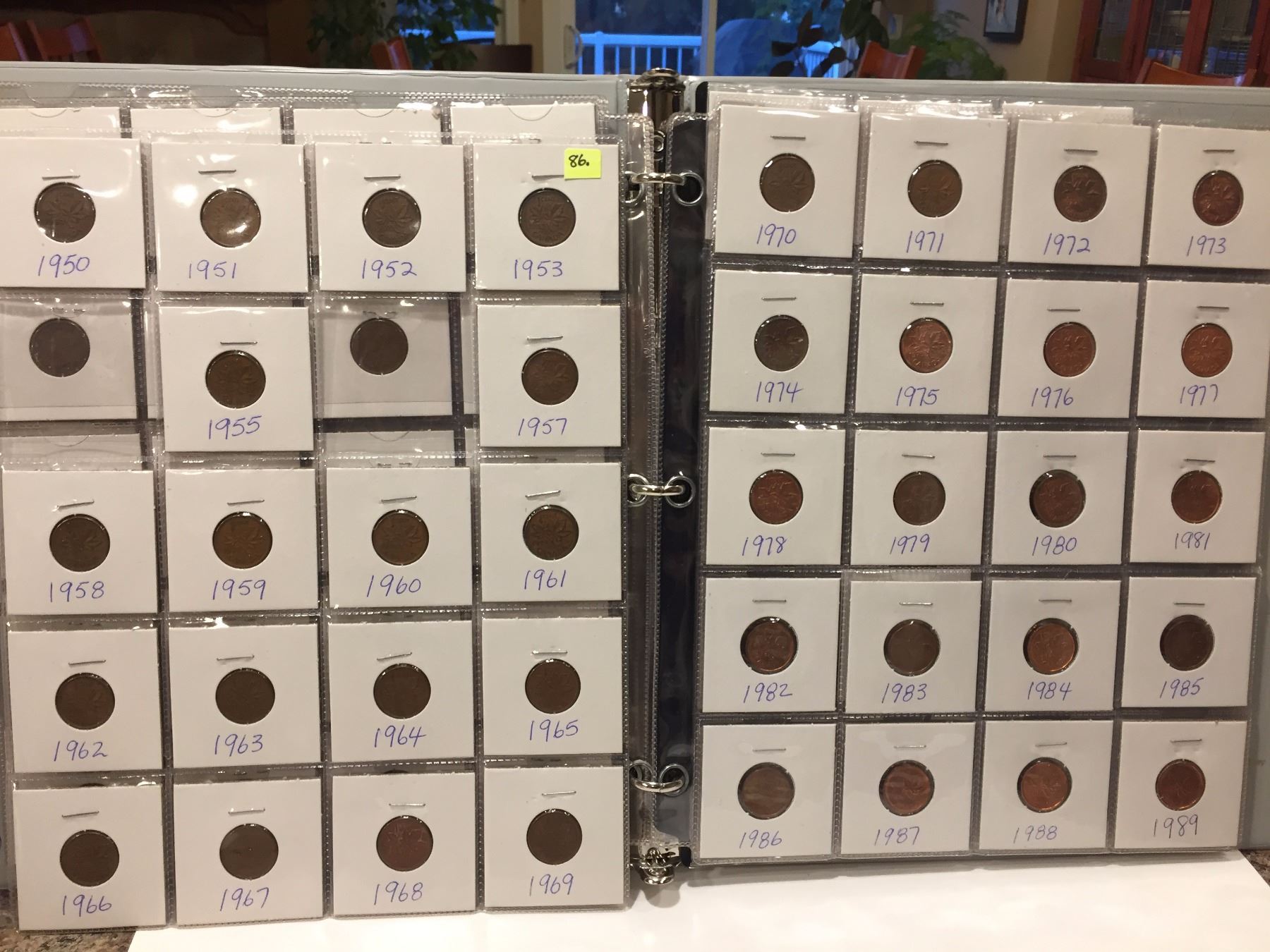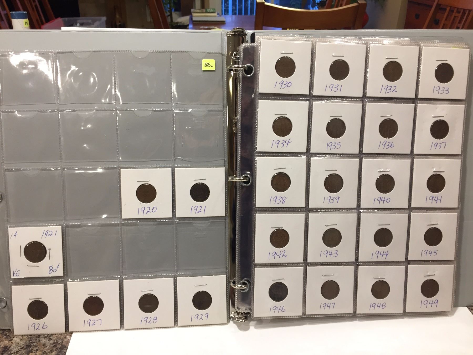 1920-1992 Sm. 1¢ Coins in Grey Binder; Duplicates; No Key Dates (88 Coins)