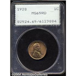 <B>1920<1C> MS65 Red PCGS.</B></I> A blazing Gem with sharp design features and brilliant orange luster. <BR><BR><B>Important notice:</B> Heritage usually auctions material at the rate of 200-250 lots per hour. On some occasions eBay Live bid software or the Internet may not be able to keep up with the pace of the auction. We recommend placing a realistic absentee bid now as insurance to avoid disappointment. Occasionally the auctioneer may eliminate or reject an eBay Live bid, and the auctioneer may also reopen a lot after the close of the eBay live bidding (usually because we missed an audience bid), and may reject your bid even if it shows you as the winning bidder. By bidding via eBay Live, you agree that Heritage may award the lot to another bidder at its sole discretion under the circumstances described above or any other reasonable circumstances. Since eBay bids are not shown to us until we open the lot on the floor, we treat those bids just like floor bids. In most cases the floor responds before the eBay bid is presented to us, due to Internet lag time, so for consistency we have made it a policy that floor bids are always considered first over tie eBay live bids. Also please note that all Heritage lots purchased through eBay Live carry a 20% Buyer's Premium. Please make sure you read the Terms and Conditions before you bid. </span></font></tr></table></td></tr></table>