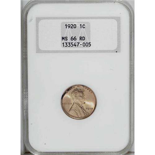 1920 1C MS66 Red NGC. A solidly struck coin with undim