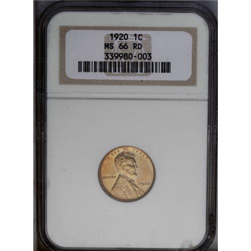 1920 1C MS66 Red NGC. Bright golden-orange patina bath 1920[1C] MS66 Red NGC.