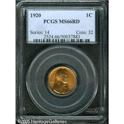 <B>1920 1C MS66 Red PCGS.</B></I> Sharply struck with reddish-gold patina and a few small marks on Lincoln's face. This is a fresh looking premium Gem with a smooth, virtually carbon-free sheen. Lot:5464