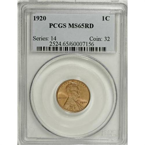 <B>1920 1C MS65 Red PCGS.</B></I> PCGS Population (390/115). NGC Census: (80/55). Mintage: 310,164,992. Numismedia Wsl. Price for NGC/PCGS coin in MS65: $100. (#2524)<BR><BR><B>Coin Engraver:</B> Victor D. Brenner<BR><BR><b>Shipping:</b> Coins & Currency (<a target="_blank" href="http://www.heritageauctions.com/common/shipping.php">view shipping information</a>)