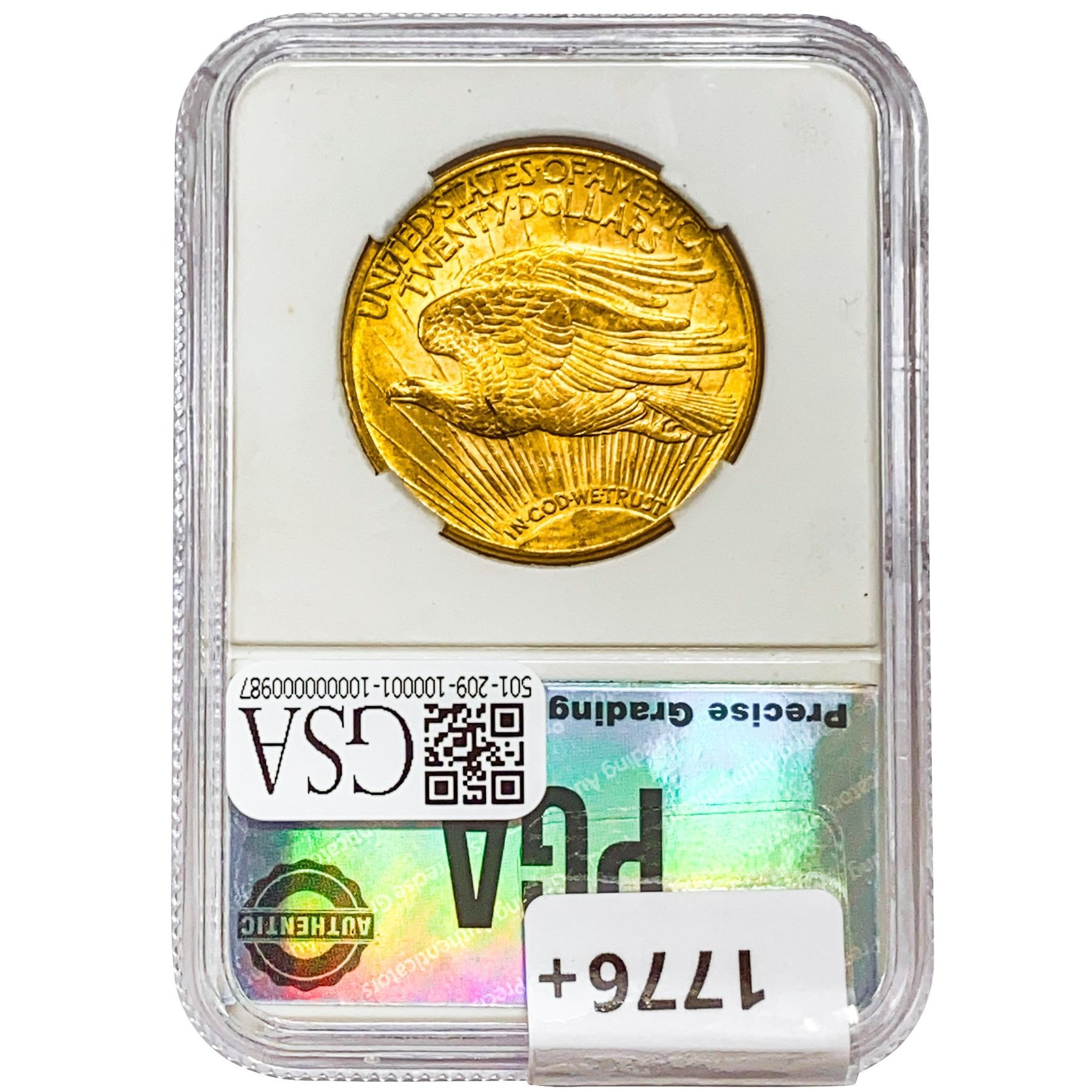 l. All non-certified coins and currency are guaranteed genuine, but are not guaranteed as to grade, since grading is a matter of opinion, an art and not a science, and therefore the description rendered by GSA or any third-party grading service may not agree with the opinion of others (including trained experts), and the same expert may not grade the same item with the same grade at two different times. GSA may, but is not obligated to, express an opinion as to non-certified numismatic items, in GSA’s opinion, or by its employees’ experience and the current interpretation of the American Numismatic Association’s standards as of the date the catalog was prepared. There is no guarantee or warranty expressed or implied that the grading opinions utilized by GSA, if any, will meet the standards of any grading service at any time in the future.