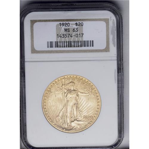 1920 $20 MS63 NGC. The bright golden surfaces offer go 1920[$20] MS63 NGC.