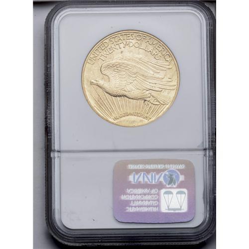 <B>1920<$20> MS63 NGC.</B></I> The bright golden surfaces offer good luster, with a few scattered field scuffs. A shimmering example with good eye appeal.