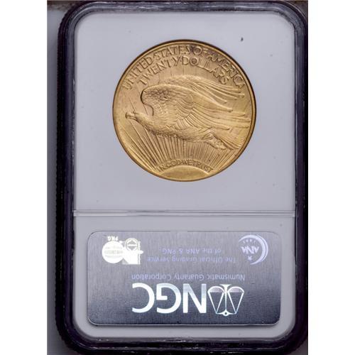 <B>1920<$20> MS63 NGC.</B></I> This satiny olive-gold scarcer date double eagle shows some flatness on Liberty's chest and knee, but the strike is generally crisp. A pair of small spots are noted near 12 o'clock on the reverse. <BR><BR><B>Important notice:</B> Heritage usually auctions material at the rate of 200-250 lots per hour. On some occasions eBay Live bid software or the Internet may not be able to keep up with the pace of the auction. We recommend placing a realistic absentee bid now as insurance to avoid disappointment. Occasionally the auctioneer may eliminate or reject an eBay Live bid, and the auctioneer may also reopen a lot after the close of the eBay live bidding (usually because we missed an audience bid), and may reject your bid even if it shows you as the winning bidder. By bidding via eBay Live, you agree that Heritage may award the lot to another bidder at its sole discretion under the circumstances described above or any other reasonable circumstances. Since eBay bids are not shown to us until we open the lot on the floor, we treat those bids just like floor bids. In most cases the floor responds before the eBay bid is presented to us, due to Internet lag time, so for consistency we have made it a policy that floor bids are always considered first over tie eBay live bids. Also please note that all Heritage lots purchased through eBay Live carry a 20% Buyer's Premium. Please make sure you read the Terms and Conditions before you bid. This lot is being auctioned in conjunction with a live floor auction by Heritage Galleries & Auctioneers. All final auction and invoice information will be supplied by Heritage Galleries & Auctioneers, and all other information should be considered preliminary. Lot:4660 <BR><BR><B>Winning Notification and Billing:</B> After the FINAL session in this auction is complete, Heritage will send e-mail and snail mail invoices. This process normally takes several days. All final auction and invoice information will be supplied by Heritage Galleries & Auctioneers, and all other information should be considered preliminary. <BR><BR>This auction will be conducted on a live auction floor and over the Internet through eBay Live. If you choose to place an absentee bid, please take a moment to <font color='#0000ff'><u><a href='http://pages.ebay.com/liveauctions/help/before/laabsentee.html'>learn how eBay Live absentee bidding works</a></u></font><font color='#000000'>
