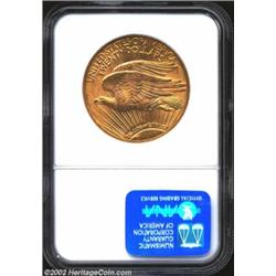 1920 $20 MS63 NGC. Variegated orange-gold colors dance across lustrous, sharp looking features. A mo