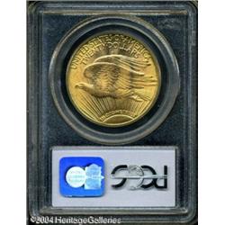 1920 $20 MS63 PCGS. A bright and lustrous Double E <B>1920 $20 MS63 PCGS.</B></I> A bright and lustrous Double Eagle that features a well struck Capitol building. Some luster grazes on the obverse field prevent a higher grade but do not limit the eye appeal. The 1920 has a much lower mintage than the ultra-rare 1921, the latter issue was not disbursed from Treasury holdings prior to the gold recall of 1933. <BR><BR><B>Important notice:</B> Heritage usually auctions material at the rate of 200-250 lots per hour. On some occasions eBay Live bid software or the Internet may not be able to keep up with the pace of the auction. We recommend placing a realistic absentee bid now as insurance to avoid disappointment. Occasionally the auctioneer may eliminate or reject an eBay Live bid, and the auctioneer may also reopen a lot after the close of the eBay live bidding (usually because we missed an audience bid), and may reject your bid even if it shows you as the winning bidder. By bidding via eBay Live, you agree that Heritage may award the lot to another bidder at its sole discretion under the circumstances described above or any other reasonable circumstances. Since eBay bids are not shown to us until we open the lot on the floor, we treat those bids just like floor bids. In most cases the floor responds before the eBay bid is presented to us, due to Internet lag time, so for consistency we have made it a policy that floor bids are always considered first over tie eBay live bids. Also please note that all Heritage lots purchased through eBay Live carry a 20% Buyer's Premium. Please make sure you read the Terms and Conditions before you bid. This lot is being auctioned in conjunction with a live floor auction by Heritage Galleries & Auctioneers. All final auction and invoice information will be supplied by Heritage Galleries & Auctioneers, and all other information should be considered preliminary. Lot:7175