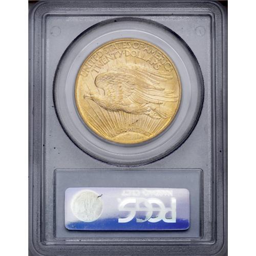 1920 $20 MS63 PCGS. Frosty and richly toned, this bold