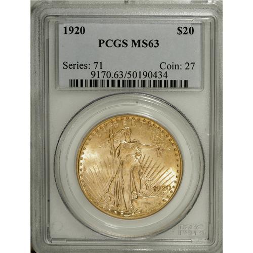 1920 $20 MS63 PCGS. PCGS Population (1380/448). NG