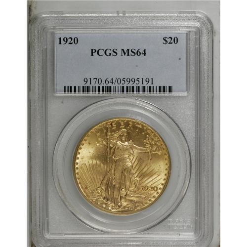 1920 $20 MS64 PCGS. Choice and solidly struck overall,
