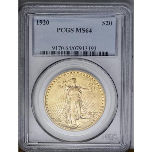 1920 $20 MS64 PCGS. This is a condition rarity, common 1920