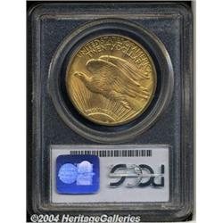 <B>1920<$20> MS64 PCGS.</B></I> Most Double Eagle date collectors will have to settle for a 1920 example that grades no finer than MS63. The more discerning specialists would be wise to enter strong bids for this richly colored, reddish-gold near-Gem. Fulsome mint luster blankets sharp looking devices. Minimally abraded, as one should expect for the MS64 designation. <BR><BR><B>Important notice:</B> Heritage usually auctions material at the rate of 200-250 lots per hour. On some occasions eBay Live bid software or the Internet may not be able to keep up with the pace of the auction. We recommend placing a realistic absentee bid now as insurance to avoid disappointment. Occasionally the auctioneer may eliminate or reject an eBay Live bid, and the auctioneer may also reopen a lot after the close of the eBay live bidding (usually because we missed an audience bid), and may reject your bid even if it shows you as the winning bidder. By bidding via eBay Live, you agree that Heritage may award the lot to another bidder at its sole discretion under the circumstances described above or any other reasonable circumstances. Since eBay bids are not shown to us until we open the lot on the floor, we treat those bids just like floor bids. In most cases the floor responds before the eBay bid is presented to us, due to Internet lag time, so for consistency we have made it a policy that floor bids are always considered first over tie eBay live bids. Also please note that all Heritage lots purchased through eBay Live carry a 20% Buyer's Premium. Please make sure you read the Terms and Conditions before you bid.