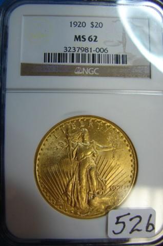 1920 $20 St. Gaudens Gold Coin NGC MS62