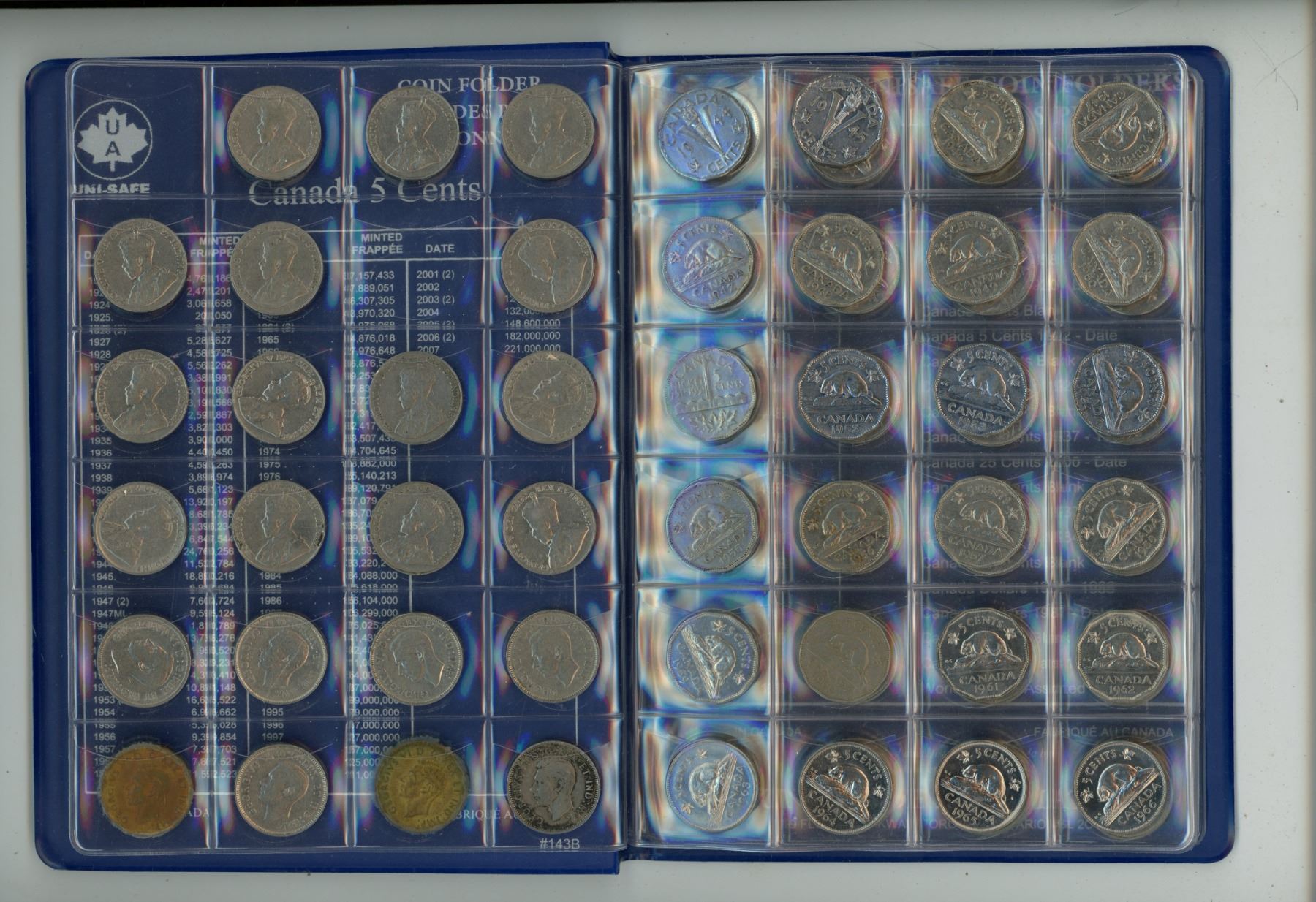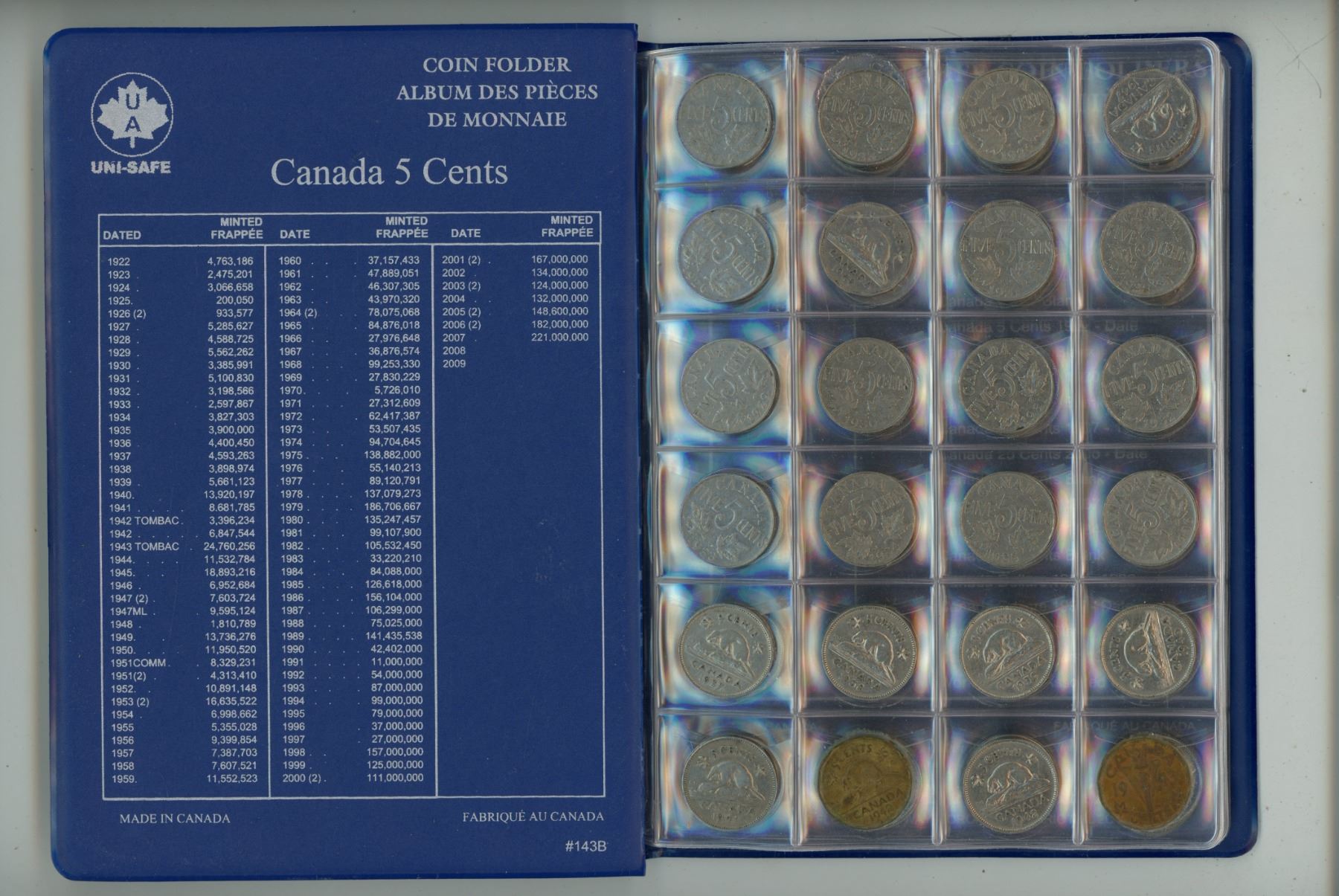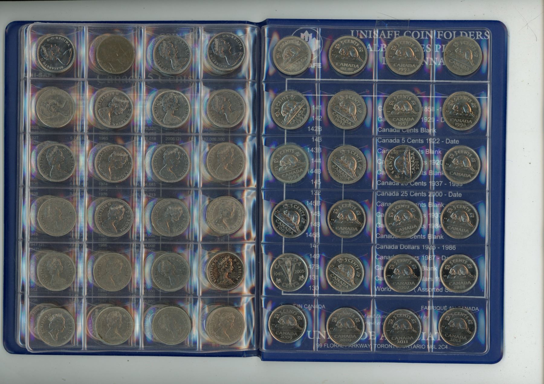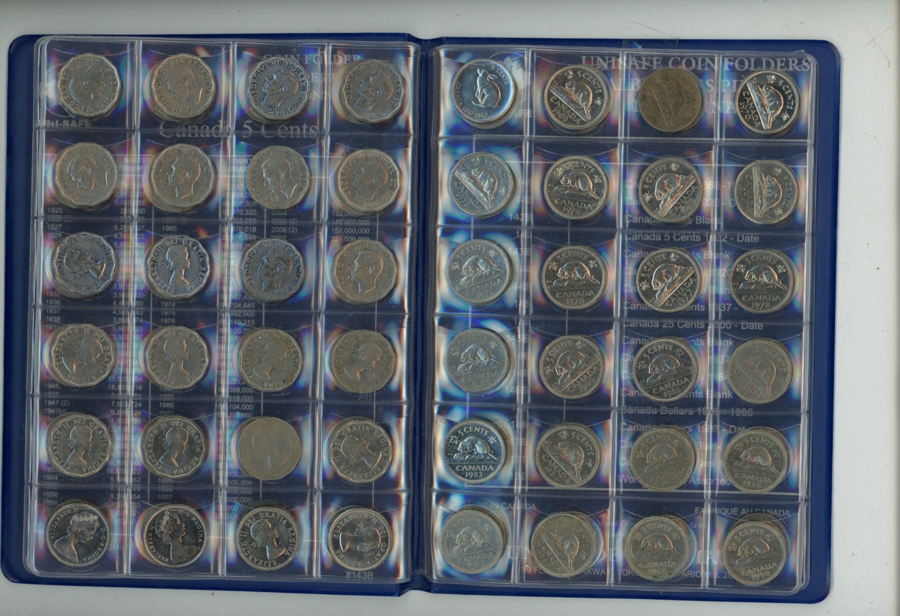 1920-2012 Unisafe Book of Five Cent Coins - Complete Collection - no 25 or 26 far