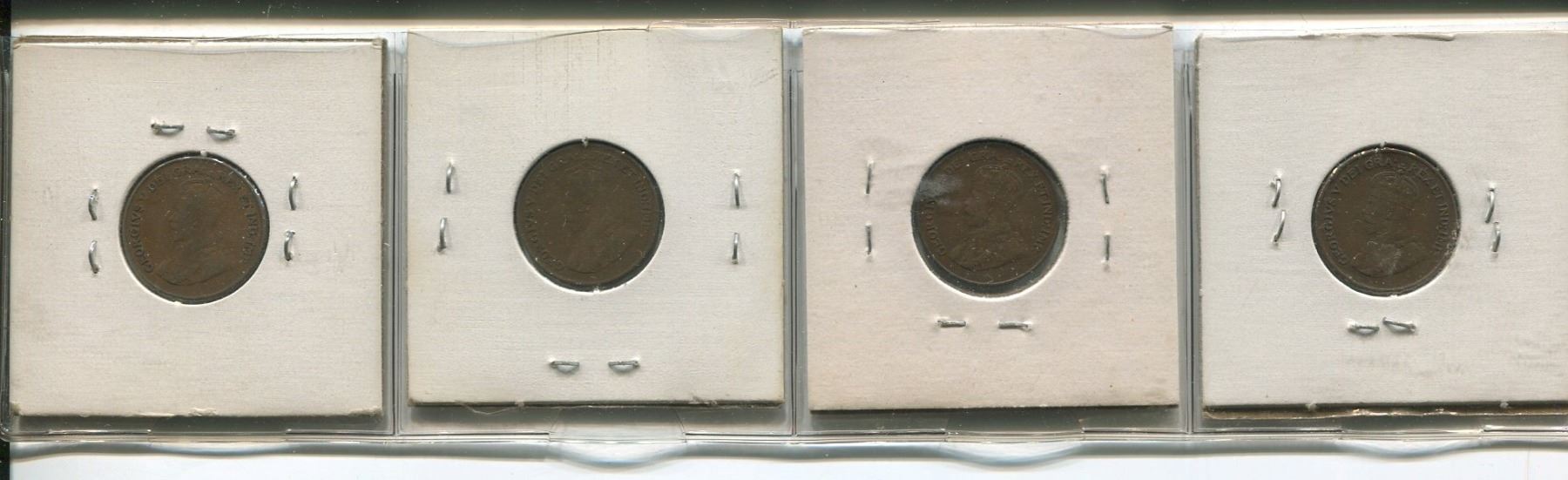 1920, 21,22,24,4-Small Canadian penny,King George V