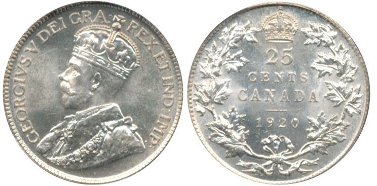 1920 25¢ PCGS MS65. Gem full white example.