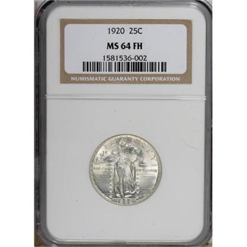 <B>1920 25C MS64 Full Head NGC.</B></I> NGC Census: (83/62). PCGS Population (129/98). Mintage: 27,860,000. Numismedia Wsl. Price for NGC/PCGS coin in MS64: $416. (#5735)<BR><BR><B>Coin Engraver:</B> Hermon A. MacNeil<BR><BR><b>Shipping:</b> Coins & Currency (<a target="_blank" href="http://www.heritageauctions.com/common/shipping.php">view shipping information</a>\)