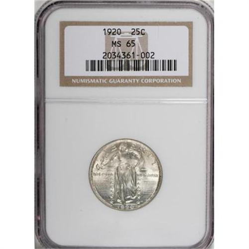 <B>1920 25C MS65 NGC.</B></I> NGC Census: (170/73). PCGS Population (191/36). Mintage: 27,860,000. Numismedia Wsl. Price for NGC/PCGS coin in MS65: $460. (#5734)<BR><BR><B>Coin Engraver:</B> Hermon A. MacNeil<BR><BR><b>Shipping:</b> Coins & Currency (<a target="_blank" href="http://www.heritageauctions.com/common/shipping.php">view shipping information</a>)