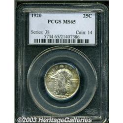 1920 25C MS65 PCGS. This Gem piece has light russet toning over much of its surfaces. The shimmering luster is very attractive. Although well struck for the date, it still shows the typical weakness at the date, especially the first digit. Important notice: Heritage usually auctions material at the rate of 200-250 lots per hour. On some occasions eBay Live bid software or the Internet may not be able to keep up with the pace of the auction. We recommend placing a realistic absentee bid now as insurance to avoid disappointment. Occasionally the auctioneer may eliminate or reject an eBay Live bid, and the auctioneer may also reopen a lot after the close of the eBay live bidding (usually because we missed an audience bid), and may reject your bid even if it shows you as the winning bidder. By bidding via eBay Live, you agree that Heritage may award the lot to another bidder at its sole discretion under the circumstances described above or any other reasonable circumstances. Also please note that all Heritage lots purchased through eBay Live carry a 20% Buyer's Premium. Please make sure you read the Terms and Conditions before you bid.