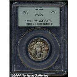 <B>1920<25C> MS65 PCGS.</B></I> Deep russet-olive toning clings to the edges of the design elements, setting off the more lightly-toned open fields and device interiors. The only apparent abrasion on this well struck specimen is a light scratch located on Liberty's upper right leg, which is not at all detracting. <BR><BR><B>Important notice:</B> Heritage usually auctions material at the rate of 200-250 lots per hour. On some occasions eBay Live bid software or the Internet may not be able to keep up with the pace of the auction. We recommend placing a realistic absentee bid now as insurance to avoid disappointment. Occasionally the auctioneer may eliminate or reject an eBay Live bid, and the auctioneer may also reopen a lot after the close of the eBay live bidding (usually because we missed an audience bid), and may reject your bid even if it shows you as the winning bidder. By bidding via eBay Live, you agree that Heritage may award the lot to another bidder at its sole discretion under the circumstances described above or any other reasonable circumstances. Since eBay bids are not shown to us until we open the lot on the floor, we treat those bids just like floor bids. In most cases the floor responds before the eBay bid is presented to us, due to Internet lag time, so for consistency we have made it a policy that floor bids are always considered first over tie eBay live bids. Also please note that all Heritage lots purchased through eBay Live carry a 20% Buyer's Premium. Please make sure you read the Terms and Conditions before you bid.
