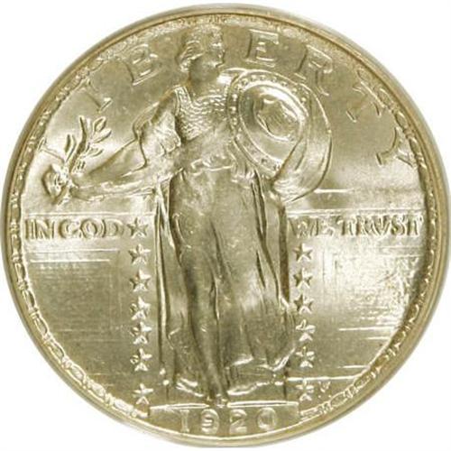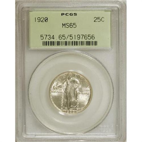 <B>1920 25C MS65 PCGS.</B></I> PCGS Population (180/34). NGC Census: (168/73). Mintage: 27,860,000. Numismedia Wsl. Price for NGC/PCGS coin in MS65: $452. (#5734)<BR><BR><B>Coin Engraver:</B> Hermon A. MacNeil<BR><BR><b>Shipping:</b> Coins & Currency (<a target="_blank" href="http://www.heritageauctions.com/common/shipping.php">view shipping information</a>)