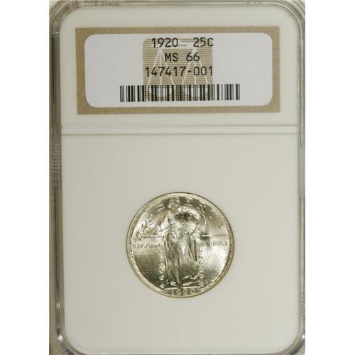 <B>1920 25C MS66 NGC.</B></I> Potent luster dazzles the viewer, and the reverse is well preserved. This virtually brilliant quarter shows some incompleteness of detail at 6 and 12 o'clock, but the eye appeal is undeniable.<BR><BR><b>Shipping:</b> Coins & Currency (<a target="_blank" href="http://www.heritageauctions.com/common/shipping.php">view shipping information</a>)