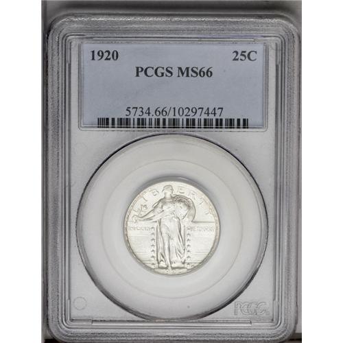 1920 25C MS66 PCGS. A lovely, brilliant Premium Gem ex 1920[25C] MS66 PCGS.