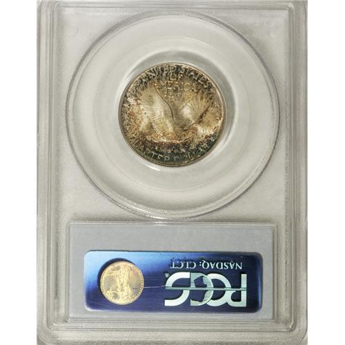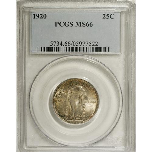 <B>1920 25C MS66 PCGS.</B></I> This is a remarkable piece that should be given the Full Head designation, although some could argue that it is only 90% to 95% full. Perhaps the certification services should provide a "Partial Head" designation or actually specify the percentage of head details that remain. A designation of "90% Full Head" would be more desirable than a "50% Full Head," for example. This Premium Gem has fully lustrous surfaces beneath rich gold and iridescent toning.<BR><BR><b>Shipping:</b> Coins & Currency (<a target="_blank" href="http://www.heritageauctions.com/common/shipping.php">view shipping information</a>)