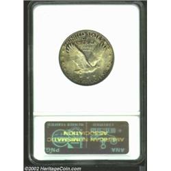 1920 25C MS67 ANACS. The borders have rich coffee-gold patina, while the centers have lighter golden