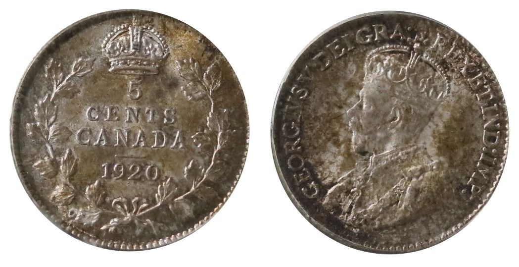 1920 5¢ PCGS Choice Mint State-64. Attractive rustic tones.