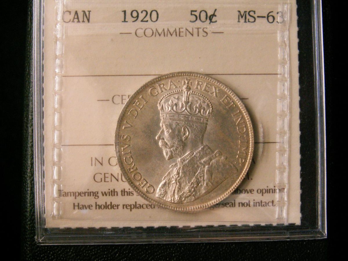 1920 50¢ ICCS MS63. Attractive and lustrous Narrow 0 variety.