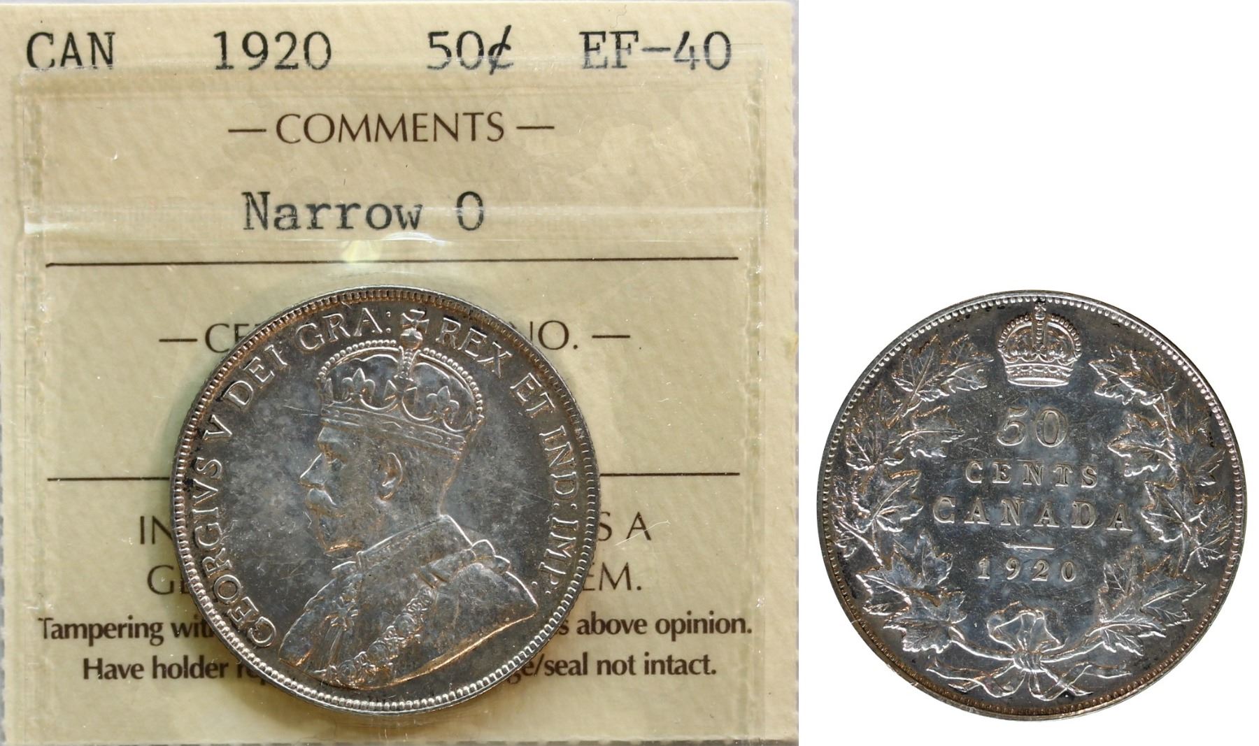 1920 50¢ "Narrow 0" ICCS Extra Fine-40. Lustrous example with light tone. Underrated date.