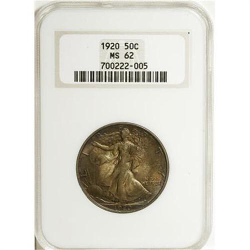 <B>1920 50C MS62 NGC.</B></I> NGC Census: (91/388). PCGS Population (80/549). Mintage: 6,372,000. Numismedia Wsl. Price for NGC/PCGS coin in MS62: $375. (#6580)<BR><BR><B>Coin Engraver:</B> Adolph A. Weinman<BR><BR><b>Shipping:</b> Coins & Currency (<a target="_blank" href="http://www.heritageauctions.com/common/shipping.php">view shipping information</a>)