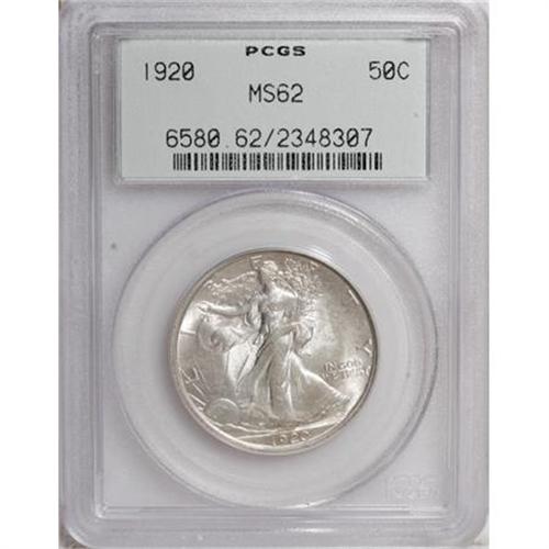<B>1920 50C MS62 PCGS.</B></I> An attractive example of this post-Great War issue, well-defined with surfaces that gleam beneath scattered, hazy powder-blue and gold-gray patina. A single abrasion of note crosses Liberty's forward leg.<BR><BR><b>Shipping:</b> Coins & Currency (<a target="_blank" href="http://www.heritageauctions.com/common/shipping.php">view shipping information</a>)