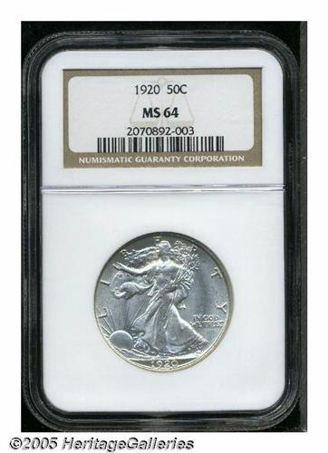 <B>1920<50C> MS64 NGC.</B></I> Supremely lustrous and untoned, with bright, satiny fields and ample sharpness for this heavily minted early P-mint.
