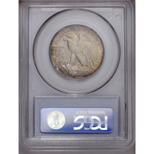 <B>1920<50C> MS64 PCGS.</B></I> Light silver-gray toning with scattered dark obverse toning patches, with the reverse adding peripheral accents of gold and sunset-orange. Softly lustrous, with a few minor abrasions and an incomplete strike on the center highpoints and the eagle's left leg limiting a higher grade.